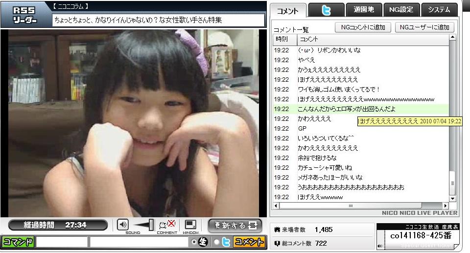 現在ニコニコ生放送で8歳の女児が放送をして話題を呼んでいる。