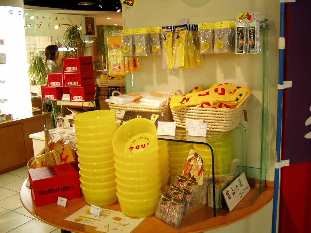 ケロリングッズは「富山駅・富山空港および富山県内のサービスエリアでもお買い求めいただけます」